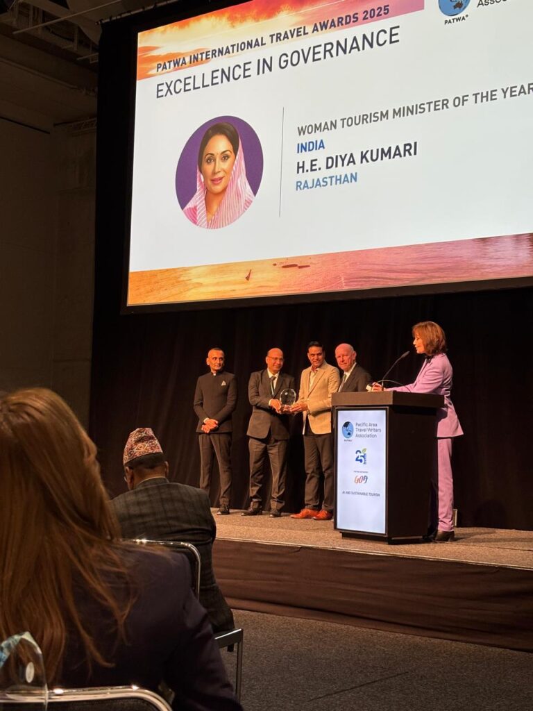 पेसिफिक एशिया ट्रैवल राइटर्स एसोसिएशन’ ने राजस्थान में पर्यटन को बढ़ावा देने के लिए किए गए सराहनीय कार्यों के लिए उप मुख्यमंत्री और पर्यटन मंत्री दीया कुमारी को वीमन टूरिज्म मिनिस्टर ऑफ द ईयर, इंडिया के सम्मान से सम्मानित किया है। उन्हें यह सम्मान आईटीबी बर्लिन, जर्मनी में सेशेल्स के पूर्व पर्यटन मंत्री, डॉ. एलन सेंटएन्ज द्वारा दिया गया।